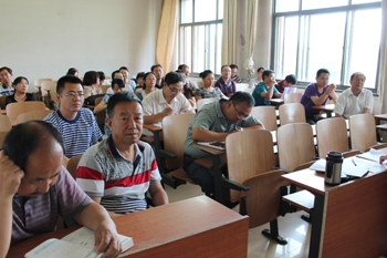 2015年7月1日下午16:30,388vip太阳集团在综合教学楼0310室召开了全院教职工大会布置期末工作。388vip太阳集团党总支书记施道明、院长李前忠教授、副院长赵国军教授、副院长宫箭教授、副院长、团总支书记谢峻鹏和全院教职工参加了会议。