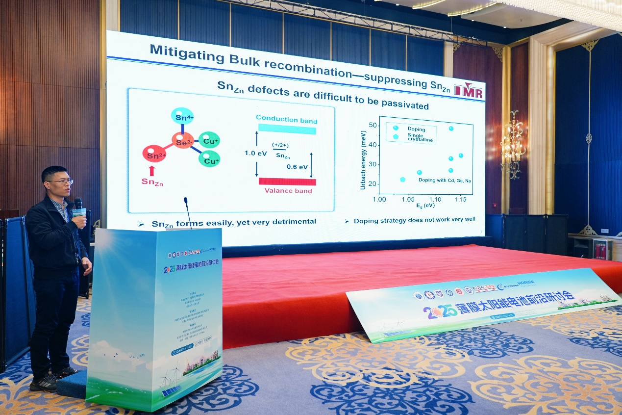 本次会议上,我校388vip太阳集团的三位学者分享了他们在铜锌锡硫硒(CZTSSe)薄膜太阳能电池领域的研究进展。朱成军教授探讨了钠元素在电池中的扩散与锁定行为,为理解其内部离子迁移与缺陷调控提供了有益视角;栾红梅副教授研究了界面自耗层对电池的钝化与元素分布的影响,为界面工程优化提供了可行路径;刘瑞建讲师则关注于Mo背电极表面的微观结构特征,对理解电极界面与性能关联提供了细致参考。这些工作从不同层面围绕材料与界面性质展开,体现了学院在相关方向上持续而扎实的探索。